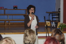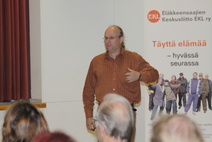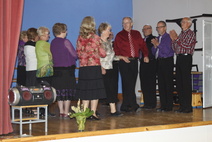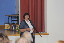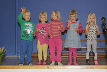 Päiväkodin lapset esittivät lauluja ja leikkejä. |  Timo Munne hauskuutti yleisöä ja toimi myös juontajana. |  Piirin puheenjohtaja Eira Väänäsen tervehdyspuhe. |